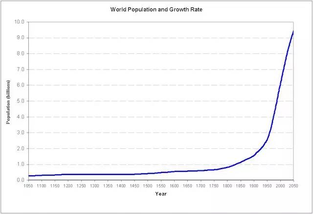 这种曲线在很多地方都是一样的,例如,世界人口增长曲线也是这样的: